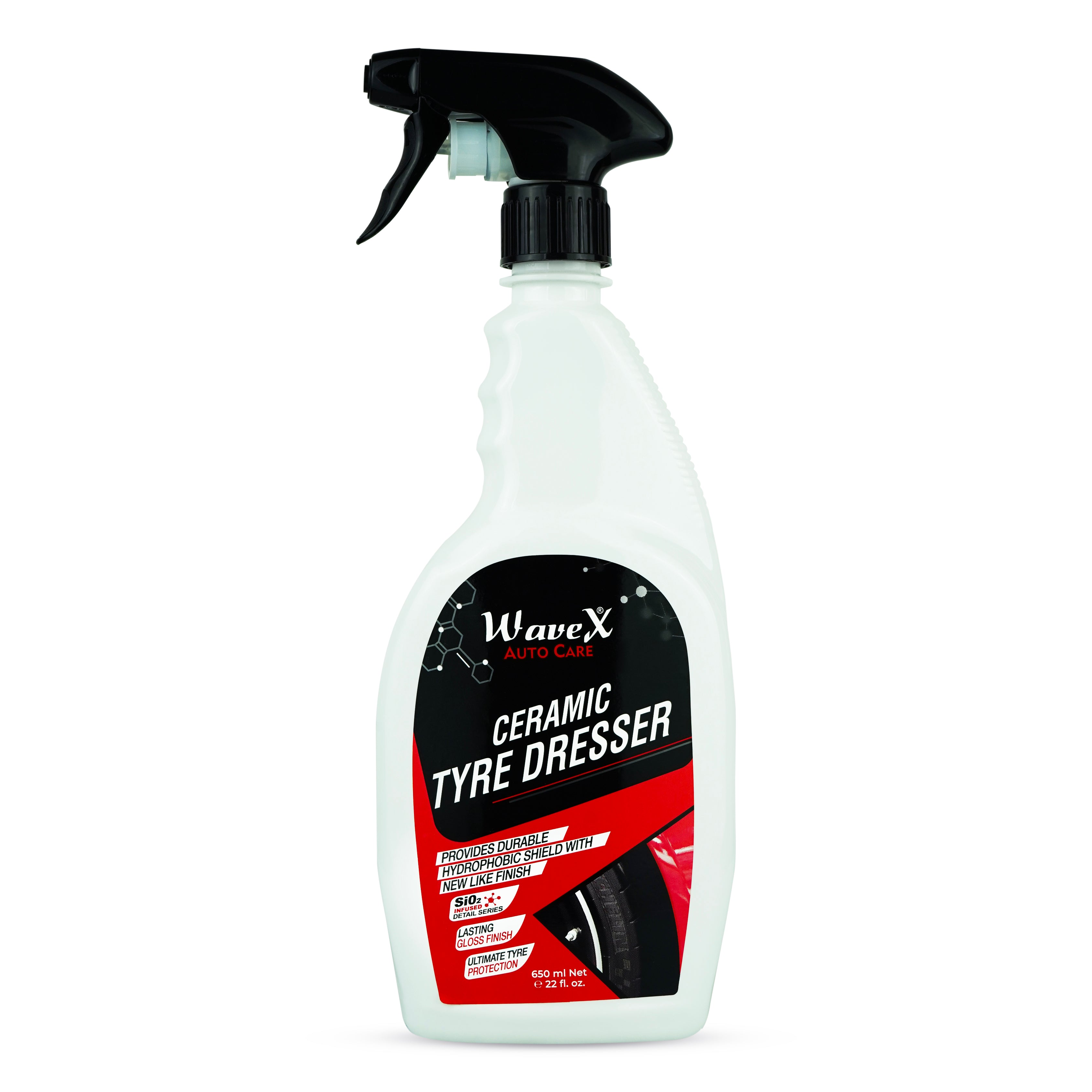 Wavex Ceramic Tyre Dresser is an advanced SiO₂-infused tyre care solution that not only restores the rich black look of tyres but also provides a long-lasting ceramic protective layer. Unlike regular tyre dressers that fade quickly, this innovative formula bonds to the rubber surface, delivering deep gloss, superior hydrophobicity, and resistance to dust, mud, and UV rays. It helps maintain tyres in a clean, dark, and durable finish while preventing cracking, fading, and browning. Easy to apply with an applicator pad, Wavex Ceramic Tyre Dresser ensures your tyres stay looking newer for longer, making it the perfect choice for detailers and car enthusiasts seeking both beauty and protection in one product.