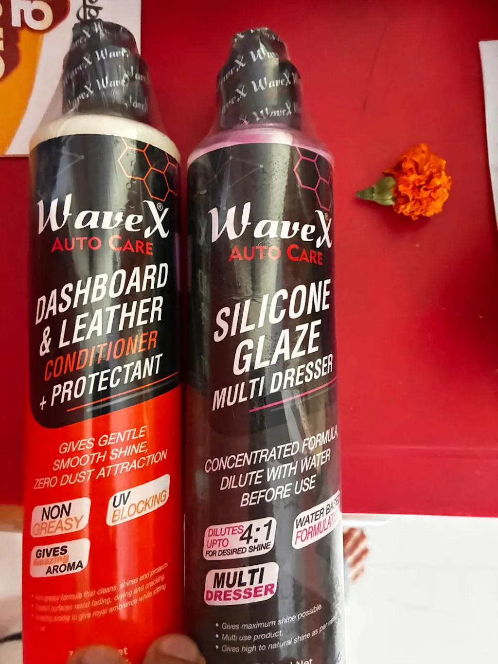 Wavex Dashboard and Leather Conditioner + Protectant Car Polish is a premium interior care solution that goes beyond ordinary dashboard polishes by cleaning, conditioning, nourishing, and protecting your car’s interior plastic, leather, vinyl, and rubber components. Its non-greasy, zero dust-attraction formula restores interiors to a natural, factory-fresh finish while forming an invisible protective layer against UV damage, fading, cracking, and discoloration. Unlike generic dashboard dressers, this advanced formula penetrates deep into surfaces to provide long-lasting care and durability. Infused with a pleasant peach-fruit fragrance, it leaves your car interiors looking refreshed and smelling inviting. Easy to apply with a foam applicator or microfiber pad, it offers partial cleaning and mild shine in one step, making it the most convenient dashboard polish and conditioner in the car care industry. Whether you need a dashboard polish, interior plastic restorer, or leather conditioner, Wavex Dashboard and Leather Conditioner + Protectant is the all-in-one solution every car owner should have in their detailing kit.