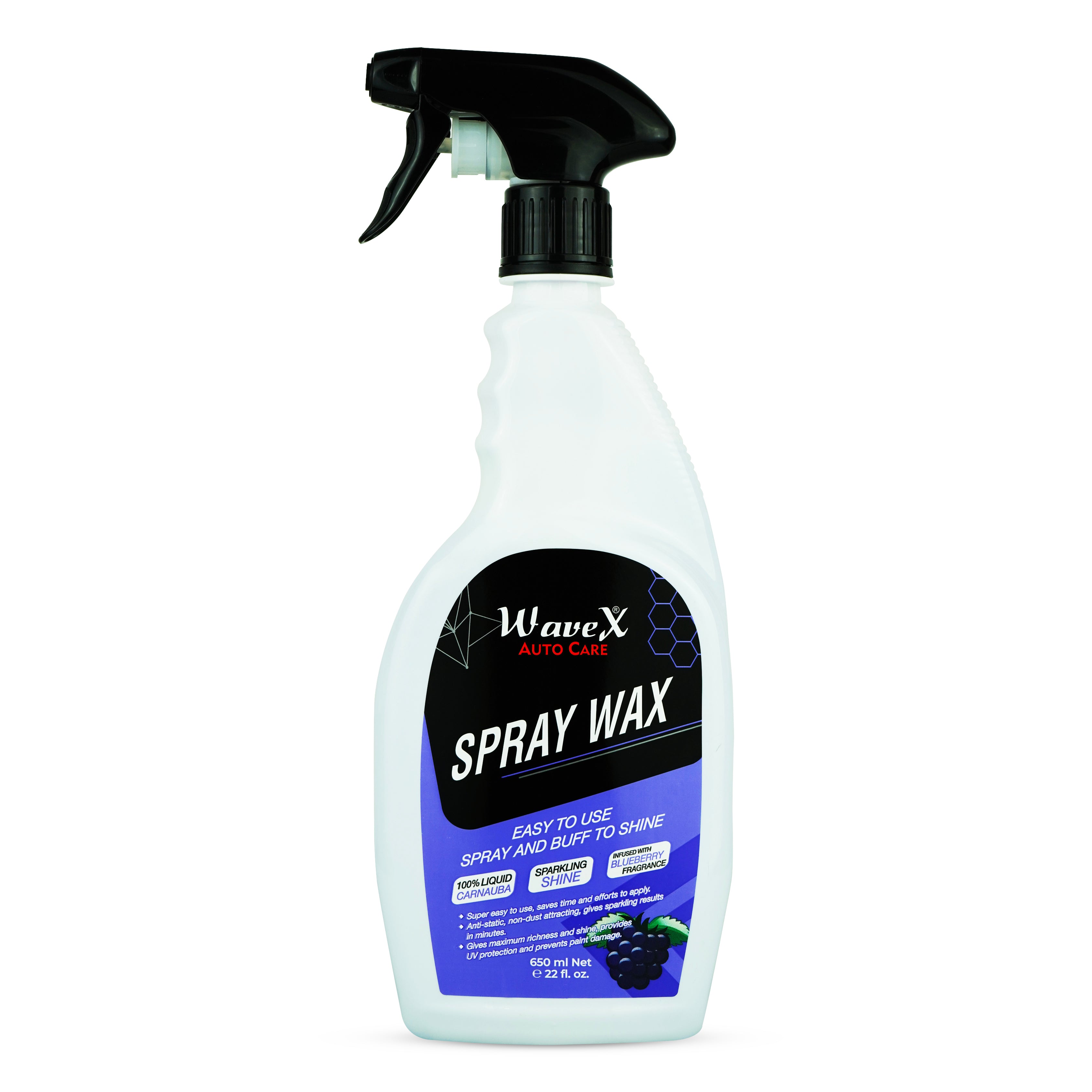 Wavex Spray Wax 650ml is a premium spray-on car and bike wax infused with ultra-refined Brazilian carnauba wax, designed to deliver an unmatched depth of gloss, UV protection, and resistance against hard water spots. Its advanced anti-static, streak-free formulation makes it safe and effective on painted surfaces, clear coats, chrome, glass, headlights, and windshields, leaving behind a smooth, high-gloss finish without attracting dust. Acting as both a standalone wax topper and a booster for pre-applied waxes or coatings, it saves time compared to traditional paste waxes while providing superior shine and protection. Easy to use on both wet or dry vehicles, this spray wax can be applied in direct sunlight or in shaded areas, making it convenient for quick detailing anytime, anywhere. With enough product for multiple applications, Wavex Spray Wax 650ml is the perfect choice for enthusiasts and professionals looking for showroom-quality shine with effortless application.